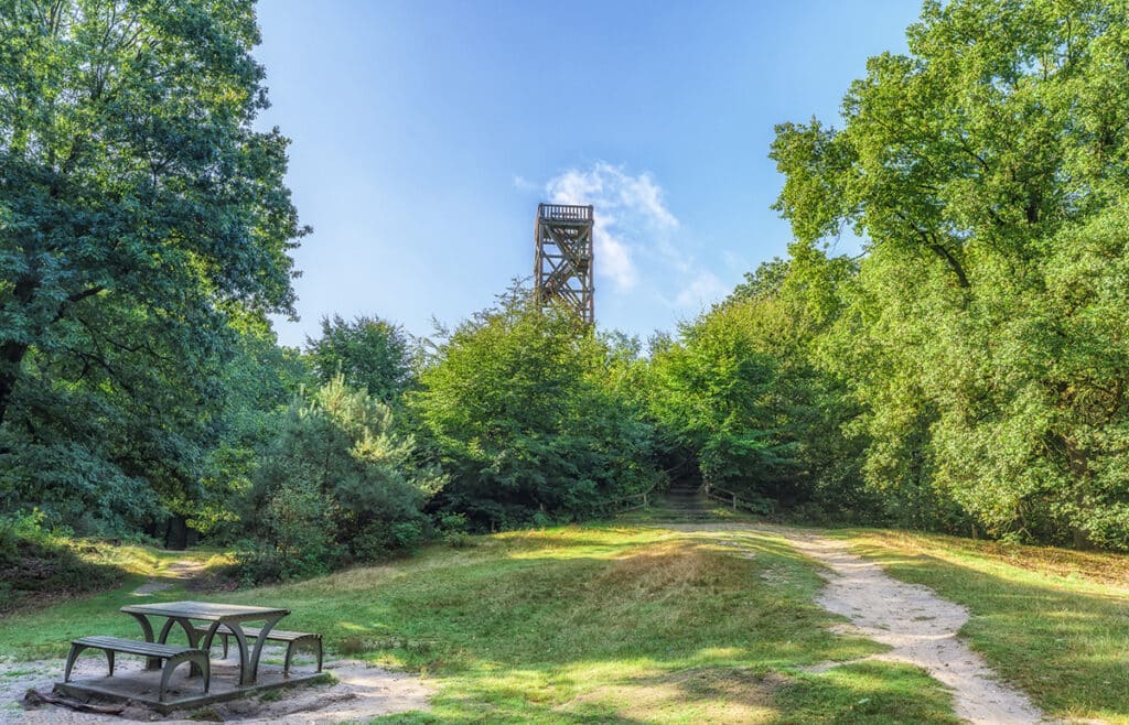 De Emmapiramide is een typische uitkijktoren zoals we die allemaal kennen: een vierkanten toren volledig gemaakt van houten planken met erbovenop een open uitkijkplatform. Wat deze uitzichttoren echter zo bijzonder maakt, is de hoogte ervan. Deze 30 meter hoge uitkijkpost is namelijk gebouwd op een oude uitkijkberg van 98 meter hoog! Hierdoor heb je vanaf de top van de toren, op het houten platform, een prachtig uitzicht over de omliggende bossen en de wijde omgeving.