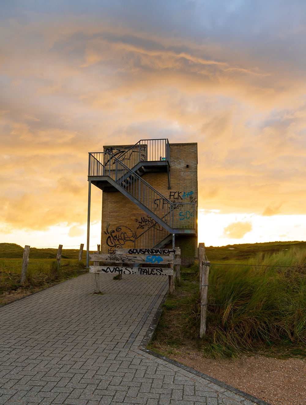 De graffiti op de gevel maakt deze vierkanten uitkijktoren Aan de Zanddijk wellicht minder fraai. Desondanks is dit uitkijkpunt beslist de moeite van het beklimmen waard, zeker aan het einde van de middag tijdens de zonsondergang.
