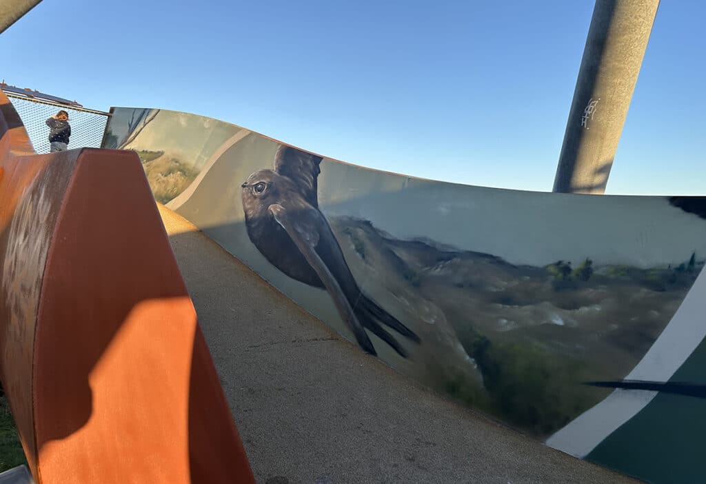 De vorm van de cortenstalen uitzichttoren is al even bijzonder: het is geïnspireerd op de asymmetrische vorm van een golf. Voor de golvende beweging van het loopdeel stonden de duinen zelf centraal, de golvende dynamiek van zand, water en wind. Het raamwerk van de buizen die de golf draagt, verwijst naar waterleidingen.