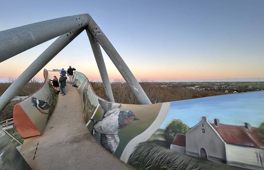 Een opvallend ontwerp op een bijzondere locatie: zo kun je 7 meter hoge uitkijktoren op de Papenberg het beste omschrijven. 7 meter voor een uitkijktoren lijkt niet erg hoog, maar doordat de toren op een 31 meter hoge duin staat, geniet je op de top van deze golvende toren van de mooiste vergezichten.