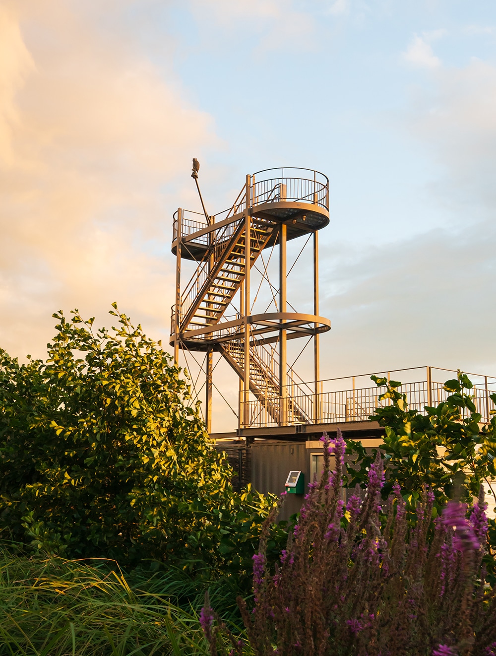 De uitkijktoren is dagelijks van zonsopkomst tot zonsondergang te beklimmen.