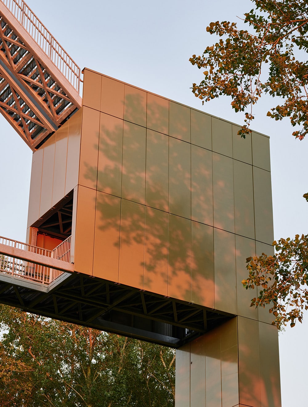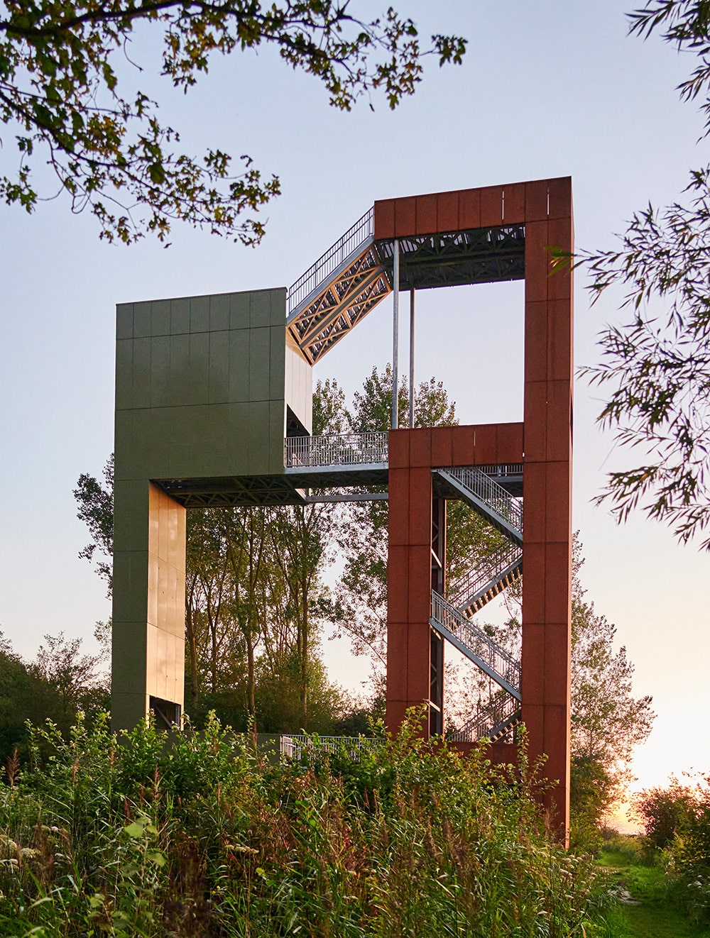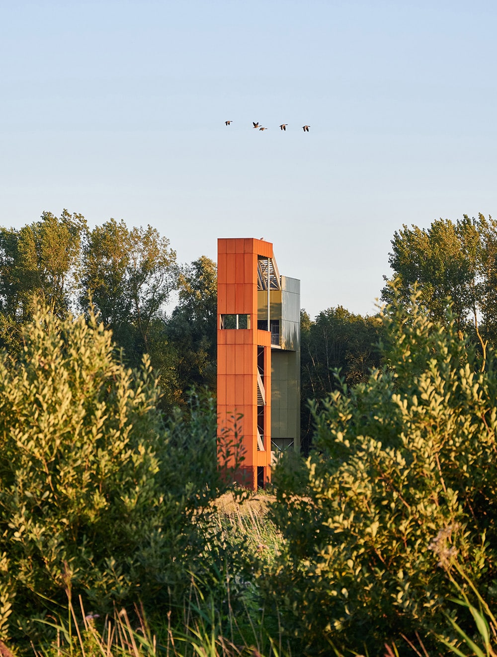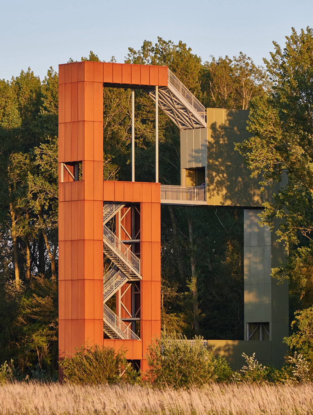 Wat een bijzonder ontwerp! De 25 meter hoge uitkijktoren Reiddomp aan de rand van het Diepsterbos bestaat in principe uit twee losstaande torens die aan elkaar gekoppeld zijn via een bordes en een trap. Het groene gedeelte staat nog net in het bos, terwijl de cortenstalen toren aan de zijde van het Lauwersmeer staat. Tijdens de beklimming leer je via informatiepanelen meer over het Nationaal Park Lauwersmeer.