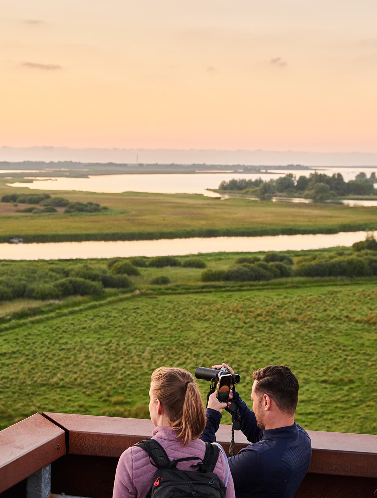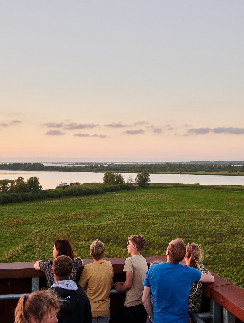 Een eenmaal boven heb je een enorm weids uitzicht over ruige rietvelden, het Lauwersmeer en de Waddenzee. Bij helder weer kun je zelfs Schiermonnikoog zien liggen! Maar boven op de toren ontdek je nog meer. Wie weet spot je wel een kudde grazende Schotse Hooglanders of konikpaarden. Ook vliegen er veel vogels voorbij, zoals de aalscholver en de bruine kiekendief, en met een beetje geluk misschien ook wel een zeearend.