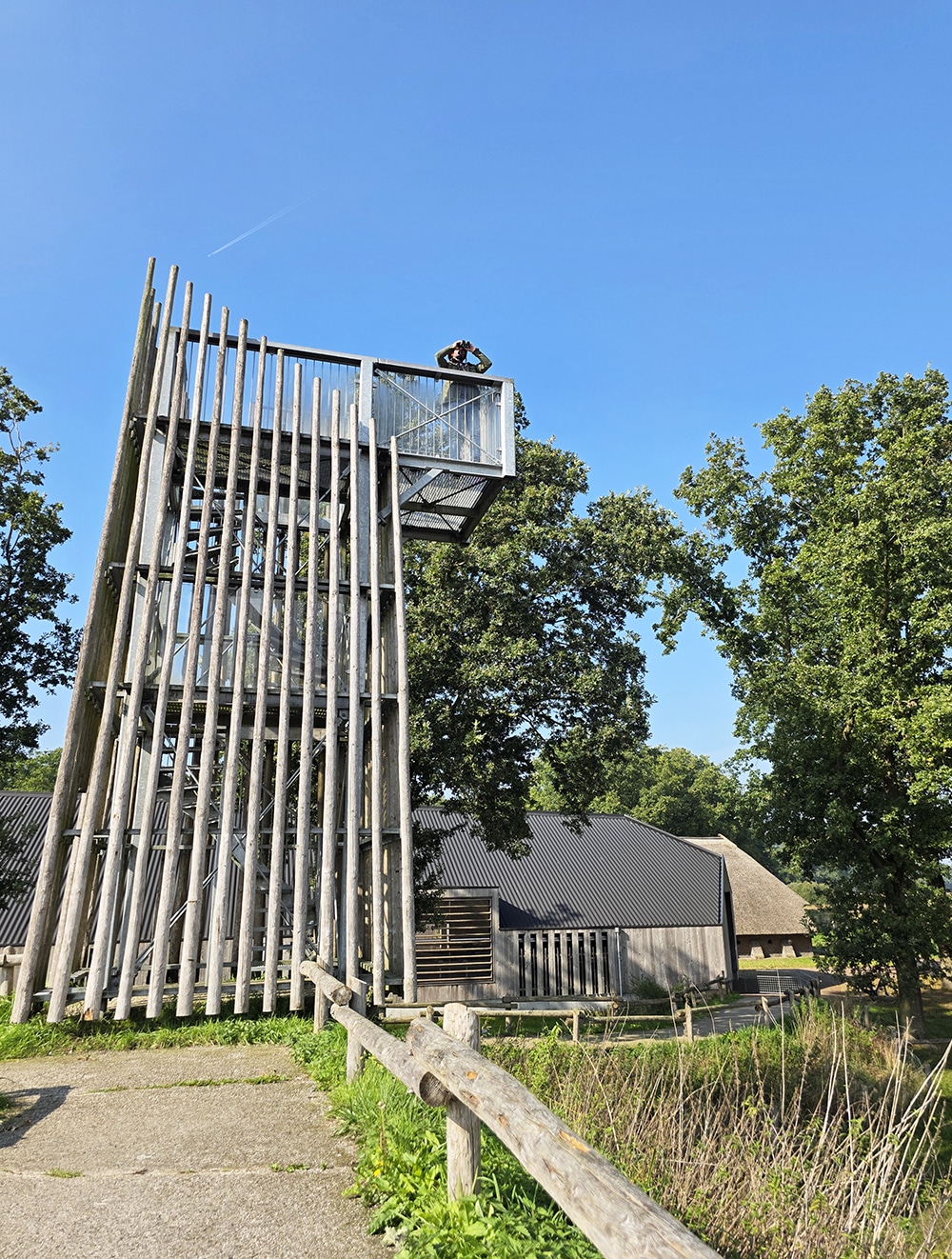 Eenmaal boven is het op en top genieten: wat een prachtig weids uitzicht over de vlakte van het Dwingelderveld. In de omgeving is weinig bebouwing, waardoor je echt ver weg kunt kijken, tot wel twintig kilometer bij helder weer. Wat een rust en ruimte.